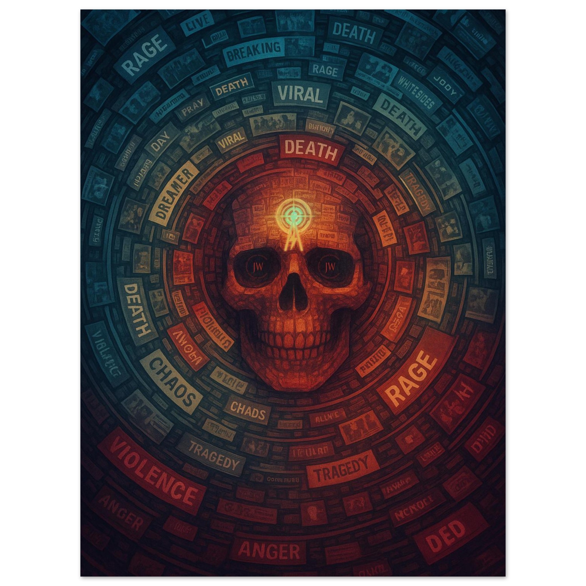 A bold Death’s the Rage Wall Poster by Jody Whitesides, available in 18×24 or 24×32 for the right fit in your space. Printed on 200 gsm matte, smooth non-reflective paper with fade-resistant inks and FSC-certified (or equivalent) sourcing.