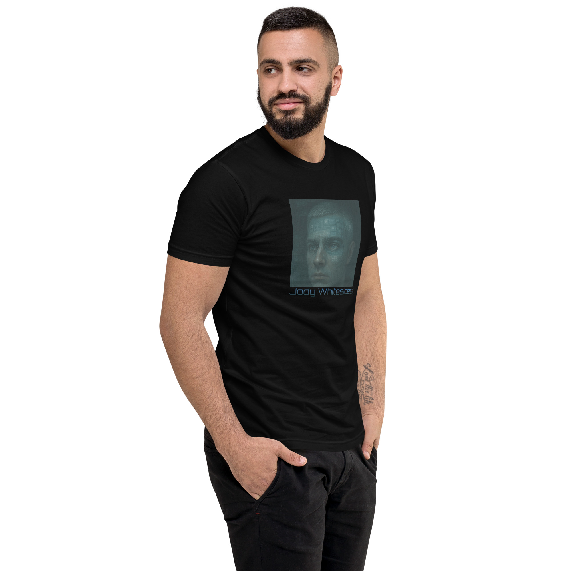 The result is a black tee that looks intentional, artistic, and lived-in from the first wear.